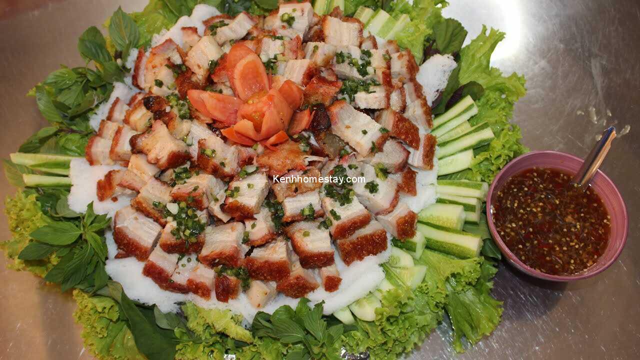 Heo được quay nguyên con đến khi chín mới thái miếng và bày lên đĩa. Khi ăn cần dùng loại nước chấm đặc biệt do đầu bếp chế biến để hương vị thêm đậm đà. Những miếng thịt mềm, thơm ngon nóng hổi, da giòn tan sẽ chinh phục vị giác của bất cứ du khách nào.